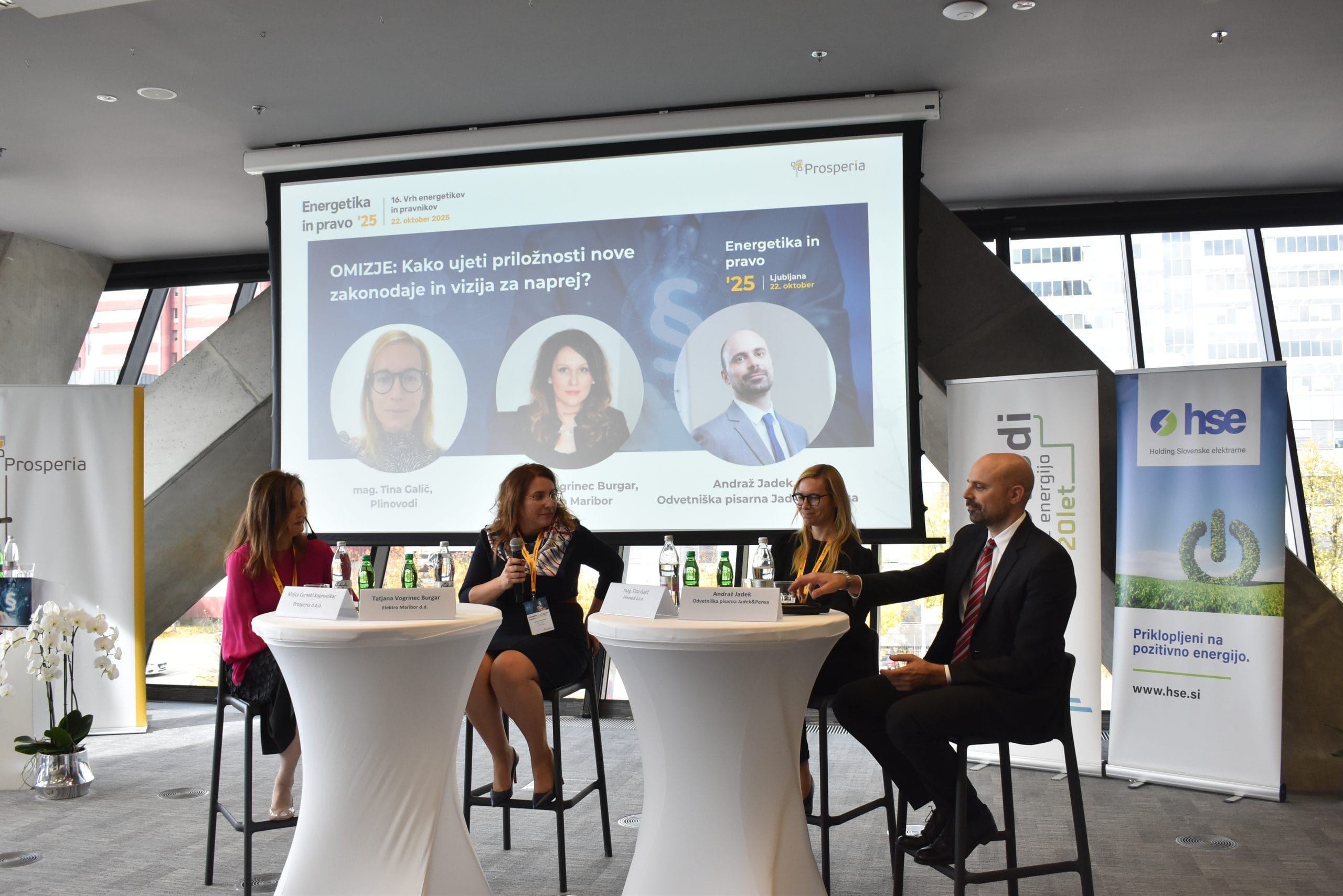 Na drugem omizju »Kako ujeti priložnosti nove zakonodaje in vizija za naprej?« so Tatjana Vogrinec Burgar (Elektro Maribor), Andraž Jadek (Odvetniška pisarna Jadek & Pensa) in mag. Tina Galič (Plinovodi d.o.o.) razpravljali o tem, kako lahko pravo postane orodje za hitrejšo in učinkovitejšo energetsko tranzicijo – od vlaganj v omrežja in obnovljive vire do oblikovanja novih poslovnih modelov v luči evropskih direktiv.